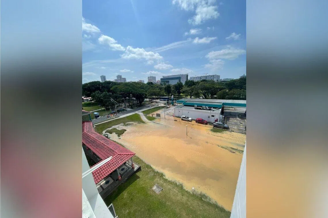 An open space in front of HDB Block 222 Ang Mo Kio Ave 1 flooded, with water seeping into a nearby petrol kiosk. Read more at straitstimes.com. Read more at straitstimes.com.