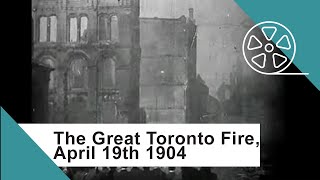 George Scott & Co. The Great Toronto Fire was a devastating blaze that destroyed 122 buildings and put 5,000 people out of work. The fire started in a clothing warehouse on Wellington Street and quickly spread, gutting thirteen acres of Toronto's prime commercial district. Special trains brought hundreds of firefighters from as far as Buffalo, New York. There was only one person injured -- the Toronto fire chief. Amazed firefighters and onlookers watched photographer George Scott and his assistant set up in the thick of the fire and film the burning buildings on Front Street. One of the first big Canadian film scoops, Scott's film was distributed throughout Canada and the United States. Reference ISN# 16107 Beyond the Printed Word: Newsreel and Broadcast Reporting in Canada = Au-delà de l'écrit : actualités filmées et reportages radio et télédiffusés au Canada. Ottawa: National Archives of Canada, 1988. IDC: 357127