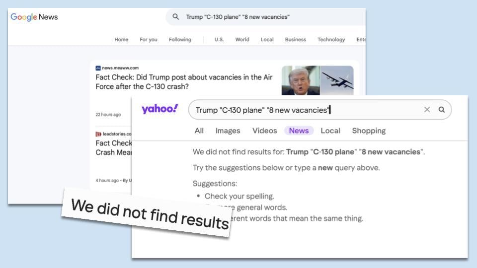Did viral posts share a real Trump Truth Social screenshot about a C-130 crash producing eight Air Force vacancies? No, that's not true: Trump did not post this message, according...
