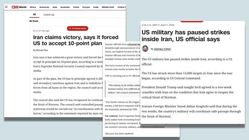 Did CNN rely on an unnamed "fake news site from Nigeria" to report on Iran's ceasefire statements on April 7, 2026, as U.S. President Donald Trump claimed? No, that's not...